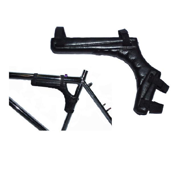 Se pone en el cuadro en donde iria un bolsito de triángulo. Es para facilitar coger la bici a pulso por esa zona con una mano.Un saludo.